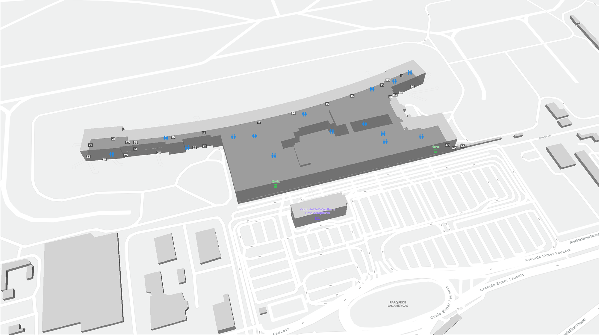 Tämä on zoomattava kartta Lima (LIM). Kartta voi antaa yleiskuvan ulkoalueesta terminaaleineen, pysäköintialueineen ja joissakin lentokentissä myös porttien, autovuokrauspalveluiden ja muiden mukavuuksien tiedot, jos zoomaat sisään.