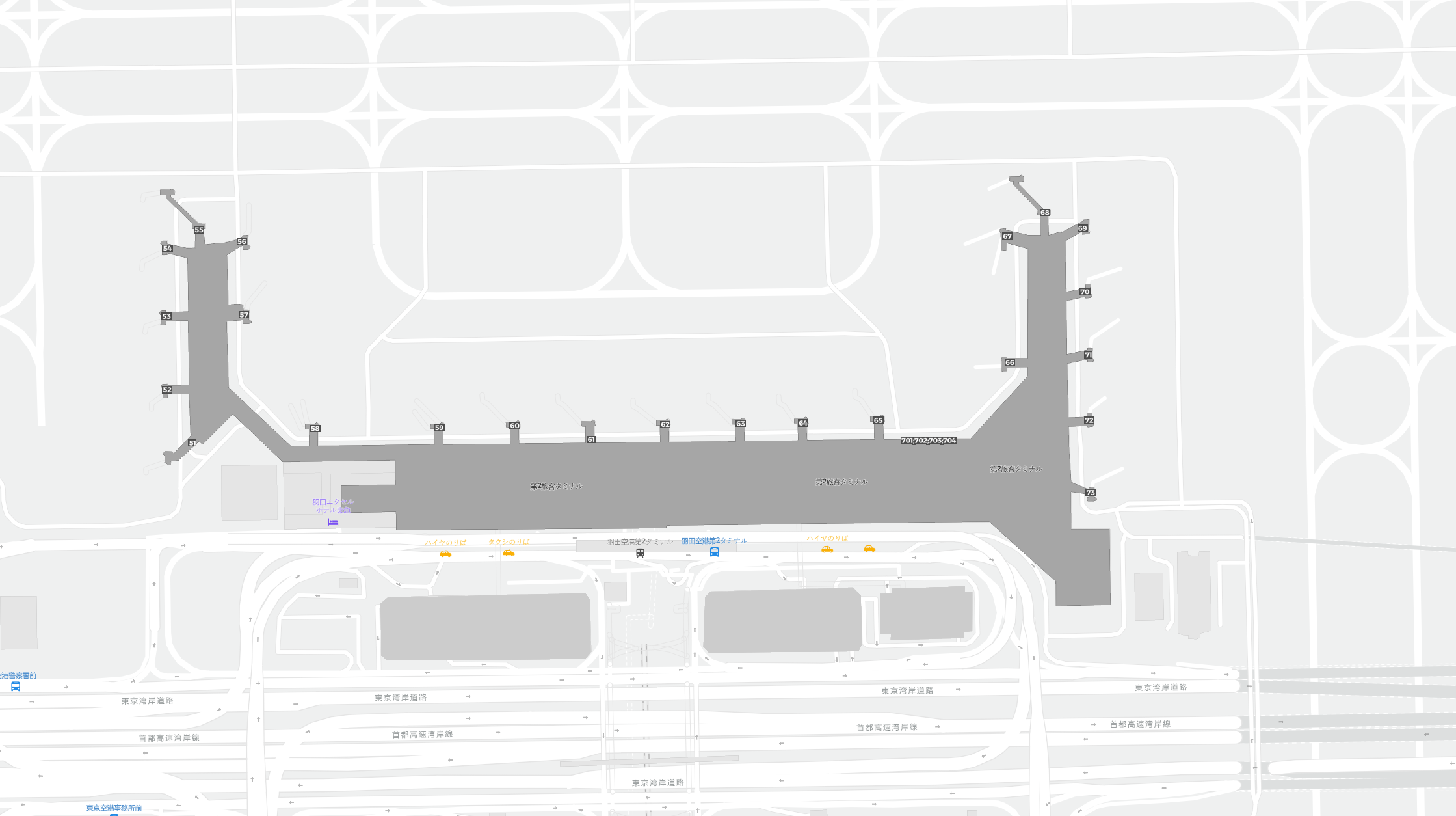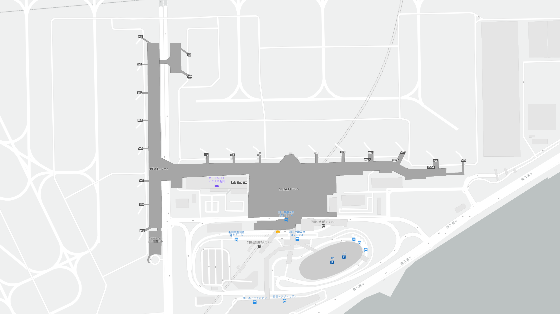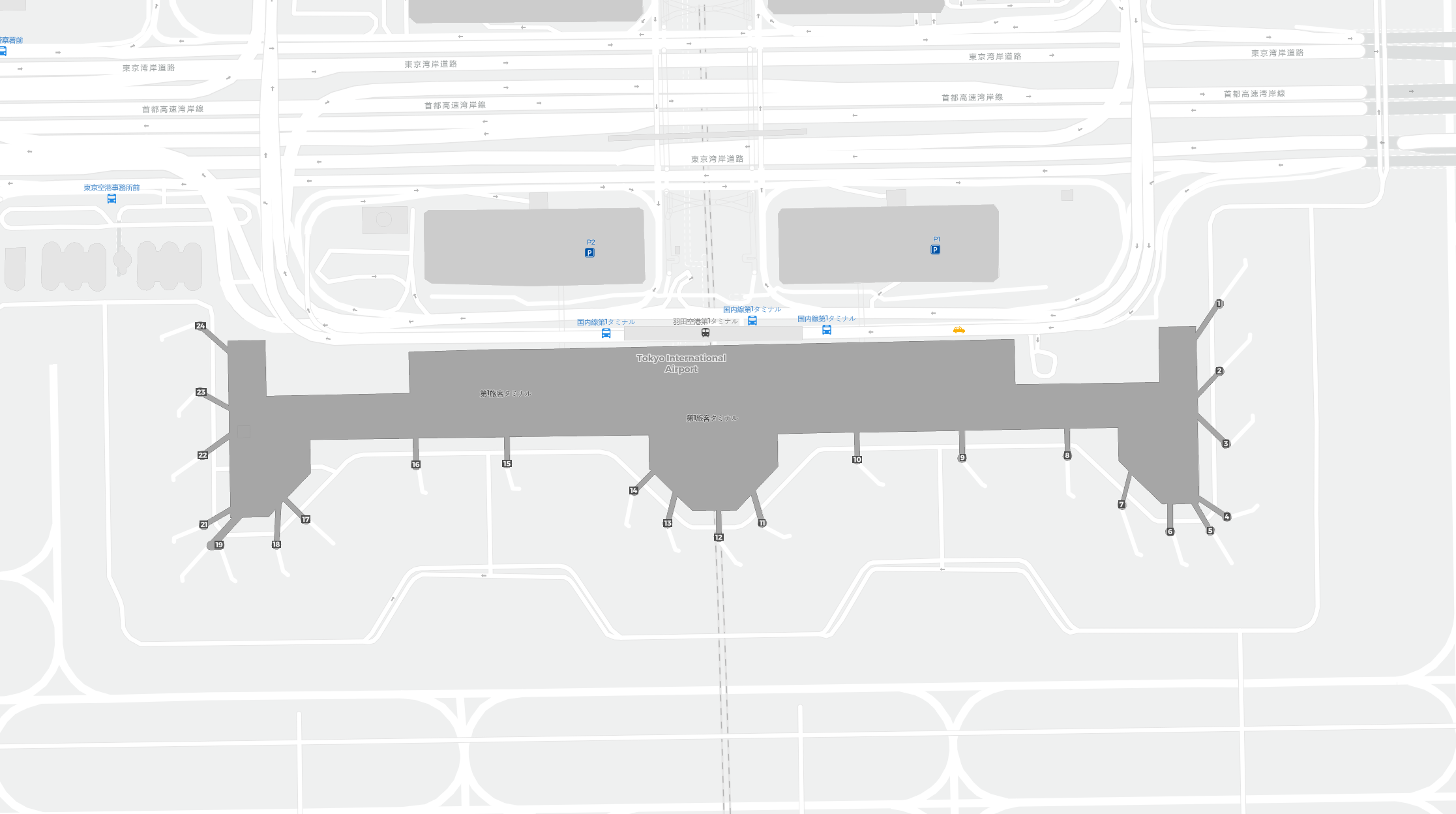 Tämä on zoomattava kartta Tokio (HND). Kartta voi antaa yleiskuvan ulkoalueesta terminaaleineen, pysäköintialueineen ja joissakin lentokentissä myös porttien, autovuokrauspalveluiden ja muiden mukavuuksien tiedot, jos zoomaat sisään.