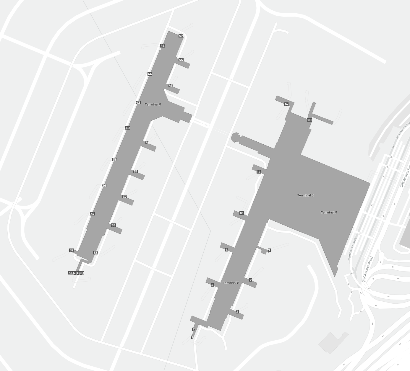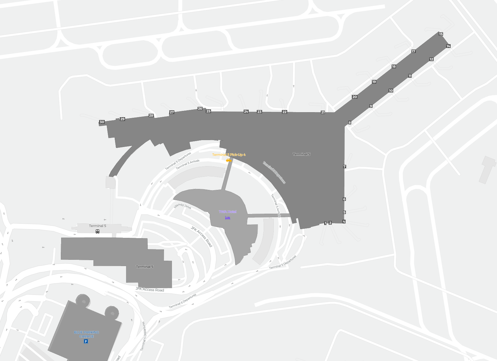 Tämä on zoomattava kartta New York (JFK). Kartta voi antaa yleiskuvan ulkoalueesta terminaaleineen, pysäköintialueineen ja joissakin lentokentissä myös porttien, autovuokrauspalveluiden ja muiden mukavuuksien tiedot, jos zoomaat sisään.