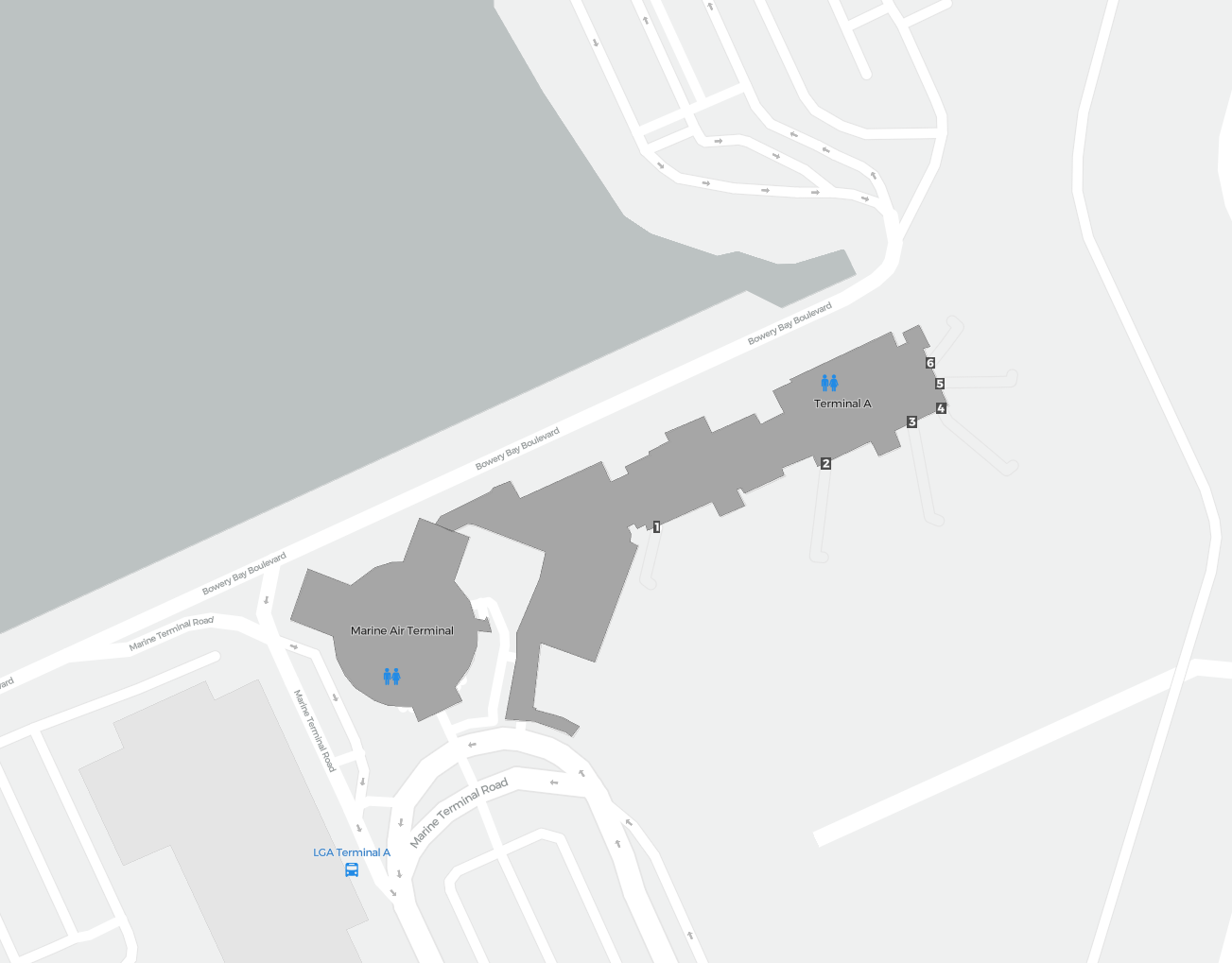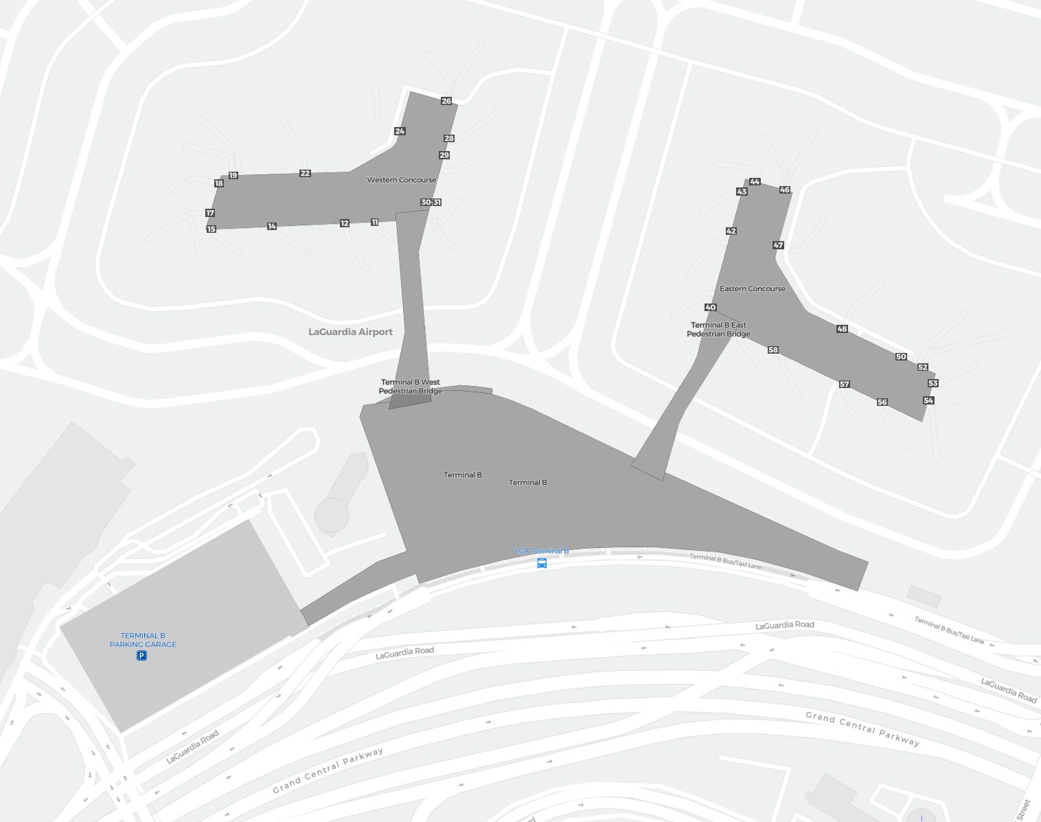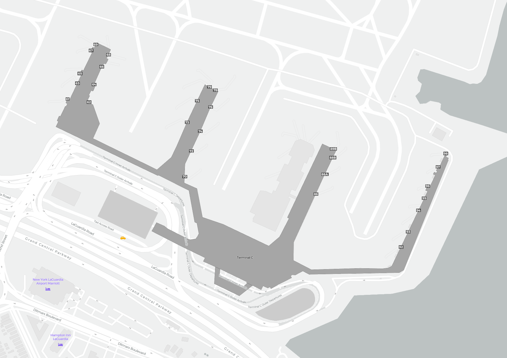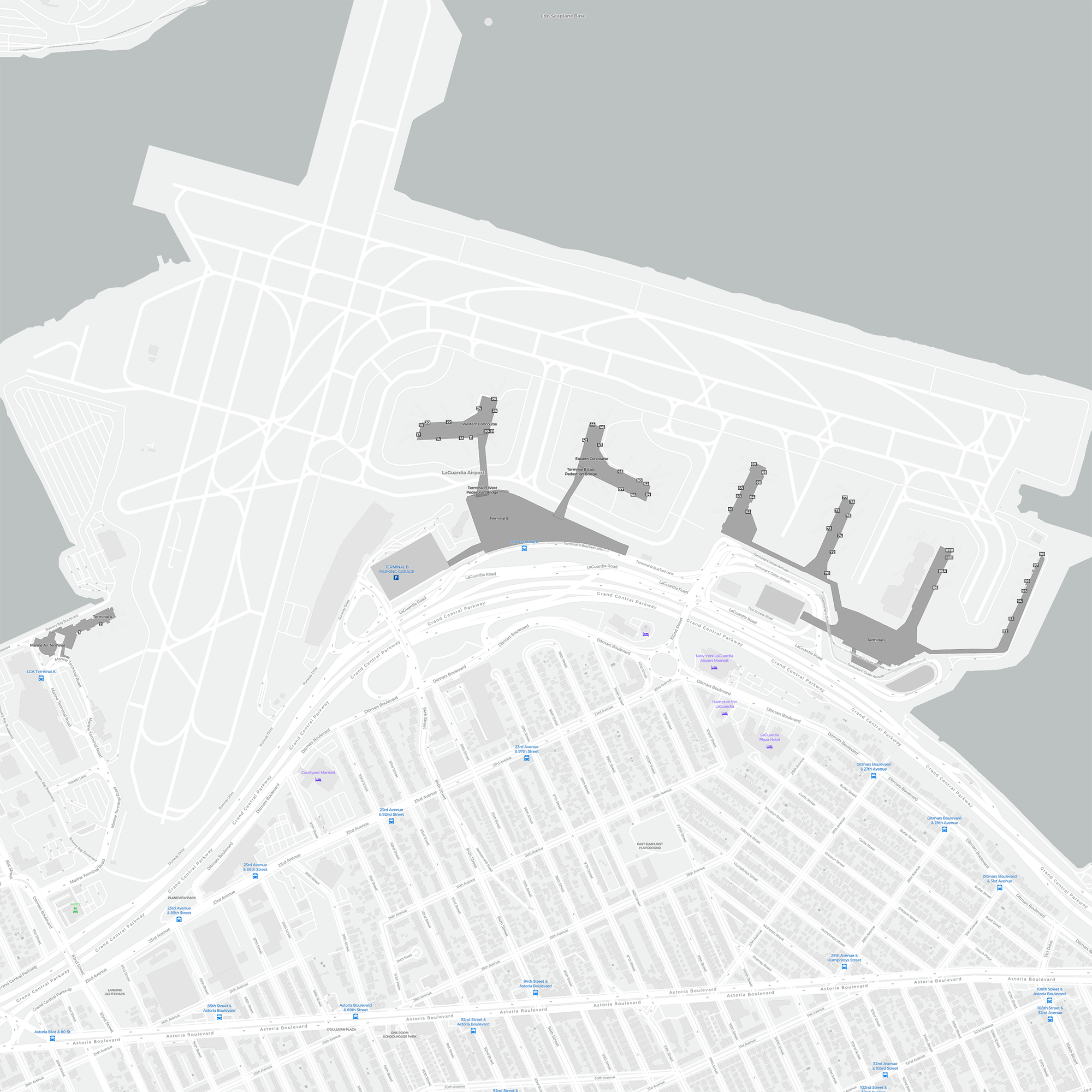 Tämä on zoomattava kartta New York (LGA). Kartta voi antaa yleiskuvan ulkoalueesta terminaaleineen, pysäköintialueineen ja joissakin lentokentissä myös porttien, autovuokrauspalveluiden ja muiden mukavuuksien tiedot, jos zoomaat sisään.