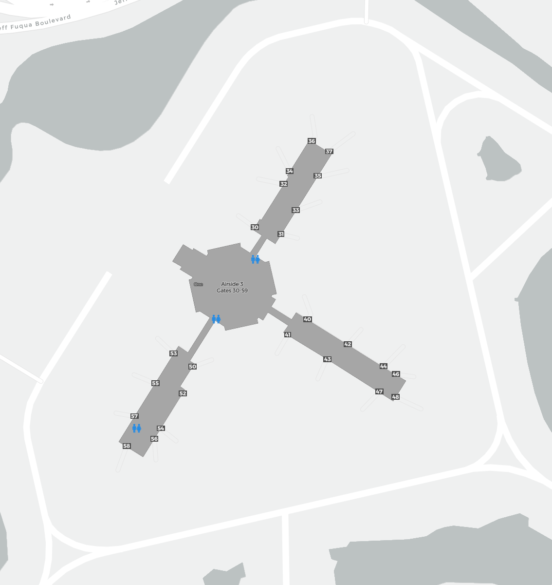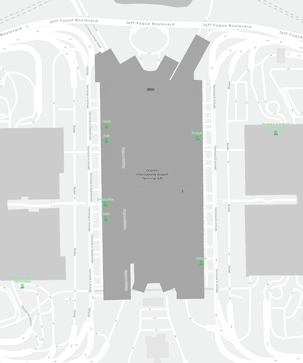 Tämä on zoomattava kartta Orlando (MCO). Kartta voi antaa yleiskuvan ulkoalueesta terminaaleineen, pysäköintialueineen ja joissakin lentokentissä myös porttien, autovuokrauspalveluiden ja muiden mukavuuksien tiedot, jos zoomaat sisään.
