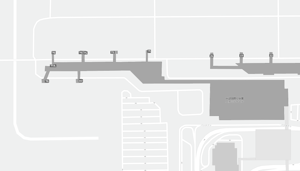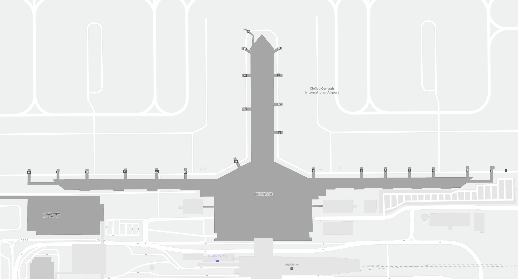 Tämä on zoomattava kartta Nagoya (NGO). Kartta voi antaa yleiskuvan ulkoalueesta terminaaleineen, pysäköintialueineen ja joissakin lentokentissä myös porttien, autovuokrauspalveluiden ja muiden mukavuuksien tiedot, jos zoomaat sisään.