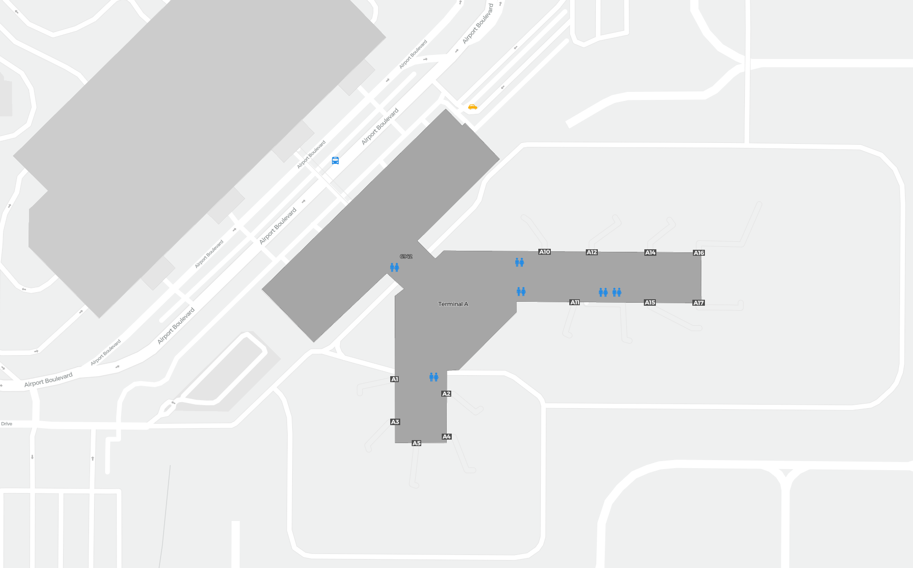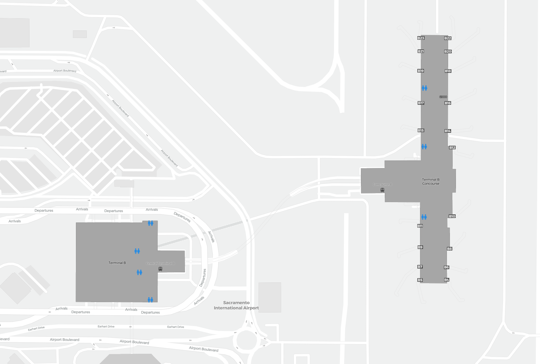 Tämä on zoomattava kartta Sacramento (SMF). Kartta voi antaa yleiskuvan ulkoalueesta terminaaleineen, pysäköintialueineen ja joissakin lentokentissä myös porttien, autovuokrauspalveluiden ja muiden mukavuuksien tiedot, jos zoomaat sisään.