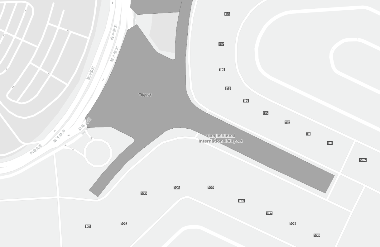 Tämä on zoomattava kartta Tianjin (TSN). Kartta voi antaa yleiskuvan ulkoalueesta terminaaleineen, pysäköintialueineen ja joissakin lentokentissä myös porttien, autovuokrauspalveluiden ja muiden mukavuuksien tiedot, jos zoomaat sisään.